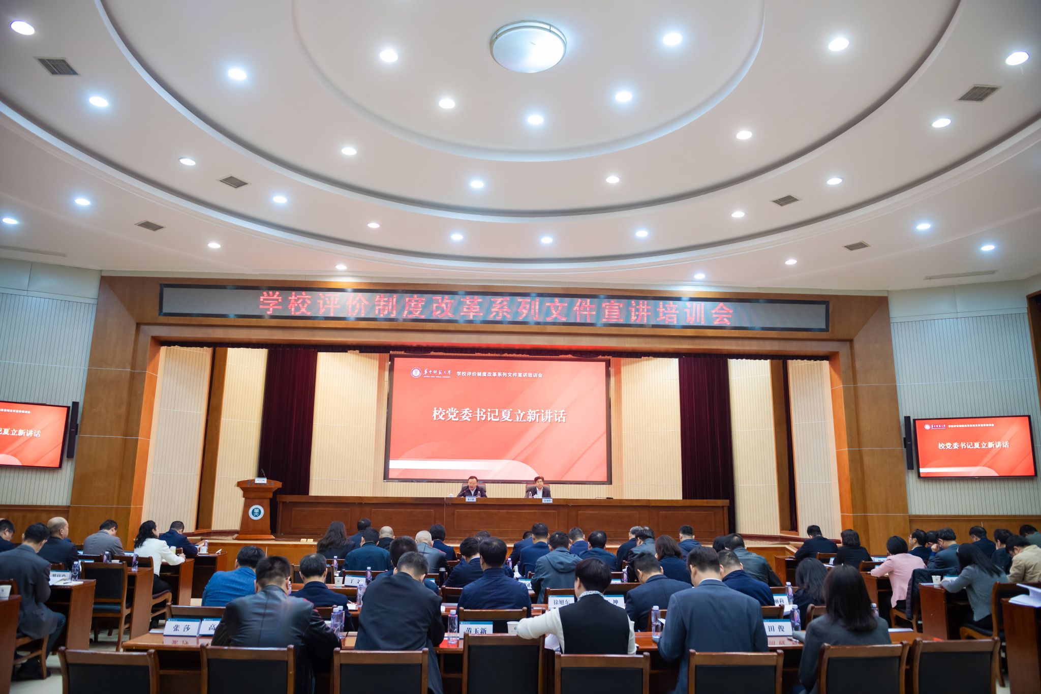 夏立新在讲话中指出,围绕学校的中心工作和事业发展谋划和推进改革,是改革取得成功的关键。学校正处于办学事业发展的关键机遇时期,能否在当前日益激烈的竞争中蹚出一条新路,是华师人必须回答的重大课题。评价制度改革的目的在于破除引进、培养、评价、服务、支持、激励等方面制约发展的壁垒弊端,最大限度地释放改革的红利,引导教职工分类发展,激发爱校情怀、奋斗精神和创新活力,在全校形成人才辈出、人尽其才、才尽其用的生动局面。各单位党政负责人要切实扛起责任,准确把握改革要求,当好学校评价制度改革的“政策宣讲员”和“权威解读人”,要充分发挥人才引育的主体作用,贯彻落实人才强校战略,把人才工作摆在首要位置,细化强化引才育才举措,推动形成“学校、学院、学者联动,全校、全员、全程引才”的人才工作格局。